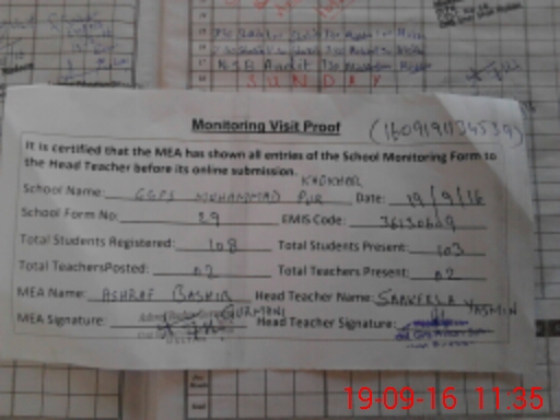 | Attendance Register | Head Teacher | MEA with School | Visit Proof |