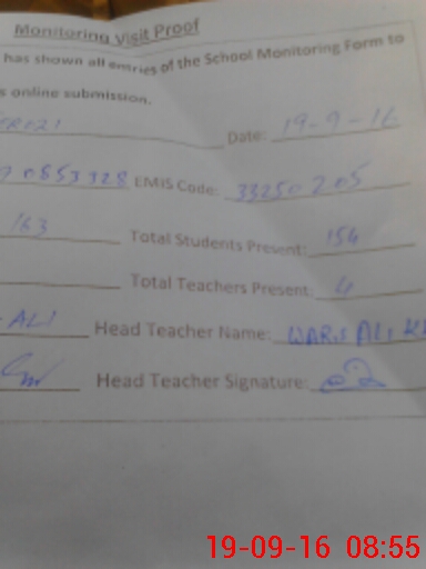 | EMIS Code: 33250205 | Name of School: GPS FEROZI | |||