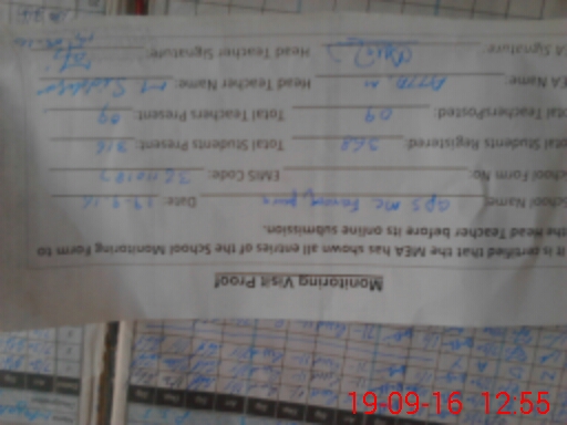 | Certified that this School was Inspected by the Undersigned MEA/DMO Today and the Information Stated Above is as Per Record. | |||||