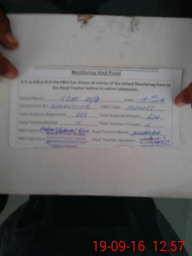 | Name: MA**** MO**** Designation: (School Headmaster's/Headmistress's) SST SCI Phone/Cell Number: 03**** |
