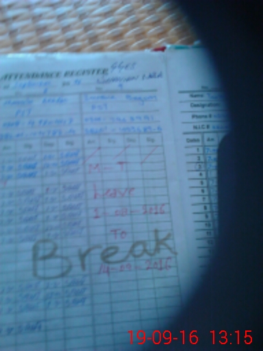 | CNIC | Full Name | Designation | R/C | Absence During Last Calender Month |