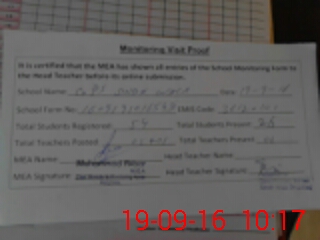 | Attendance Register | Head Teacher | MEA with School | Visit Proof |