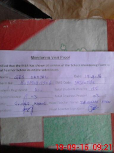 | EMIS Code: 38310194 | Name of School: GPS DADY WAL | |||