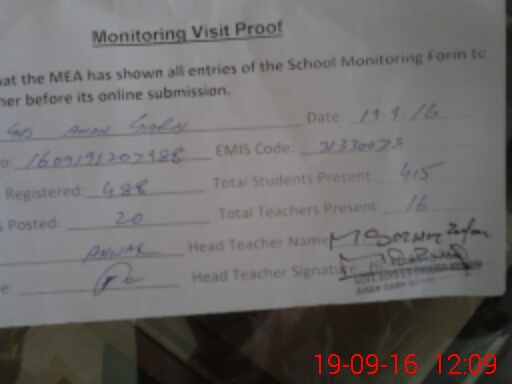 | Certified that this School was Inspected by the Undersigned MEA/DMO Today and the Information Stated Above is as Per Record. | |||||