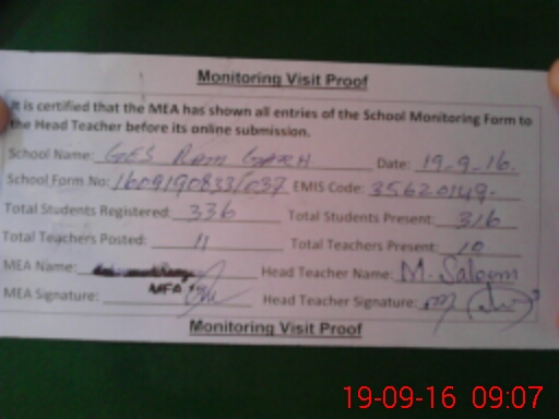 | EMIS Code: 35620149 | Name of School: GES RAM GARH 12/RB | |||