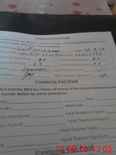 | Attendance Register | Head Teacher | MEA with School | Visit Proof |