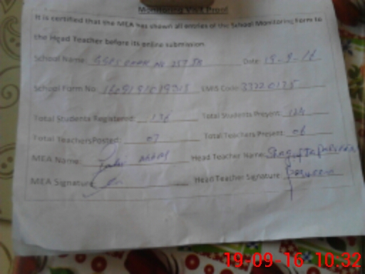 | Attendance Register | Head Teacher | MEA with School | Visit Proof |