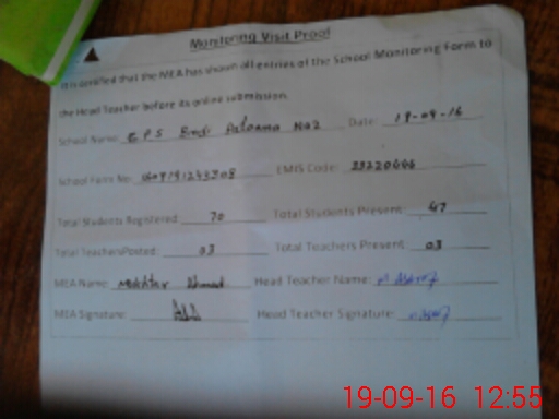 | Attendance Register | Head Teacher | MEA with School | Visit Proof |