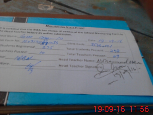 | Certified that this School was Inspected by the Undersigned MEA/DMO Today and the Information Stated Above is as Per Record. | |||||