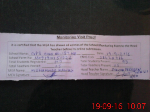 | Certified that this School was Inspected by the Undersigned MEA/DMO Today and the Information Stated Above is as Per Record. | |||||
