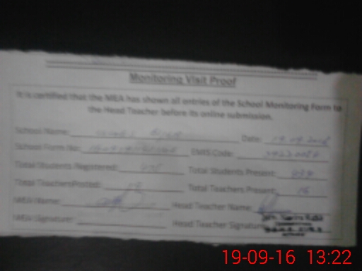| Certified that this School was Inspected by the Undersigned MEA/DMO Today and the Information Stated Above is as Per Record. | |||||