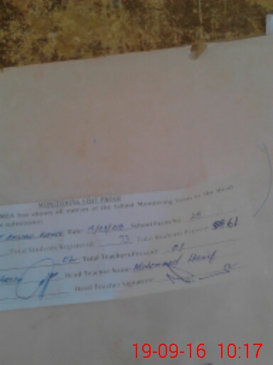 | Attendance Register | Head Teacher | MEA with School | Visit Proof |