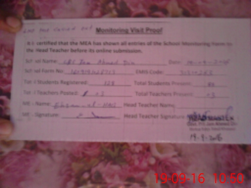 | Certified that this School was Inspected by the Undersigned MEA/DMO Today and the Information Stated Above is as Per Record. | |||||
