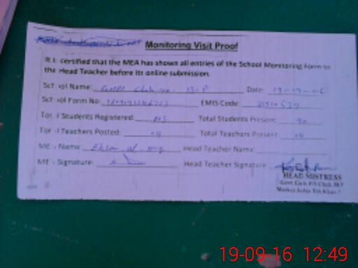 | Certified that this School was Inspected by the Undersigned MEA/DMO Today and the Information Stated Above is as Per Record. | |||||