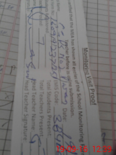 | Attendance Register | Head Teacher | MEA with School | Visit Proof |