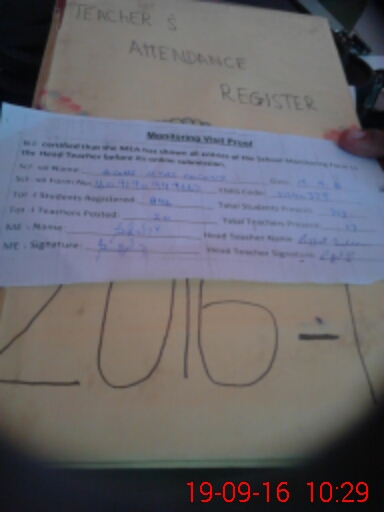| Attendance Register | Head Teacher | MEA with School | Visit Proof |