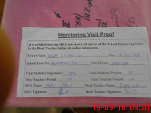 | Attendance Register | Head Teacher | MEA with School | Visit Proof |