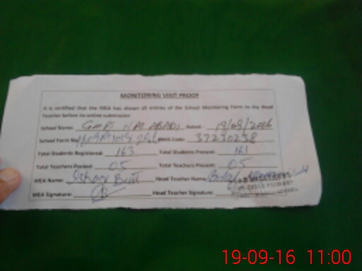 | Attendance Register | Head Teacher | MEA with School | Visit Proof |
