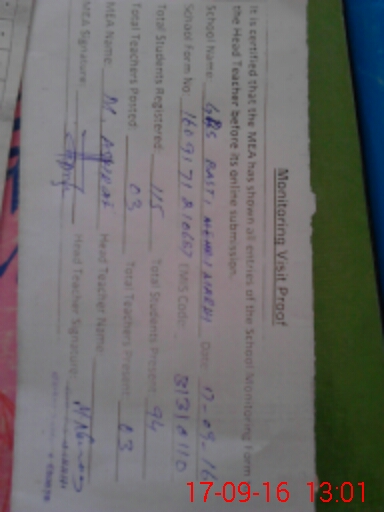| Certified that this School was Inspected by the Undersigned MEA/DMO Today and the Information Stated Above is as Per Record. | |||||