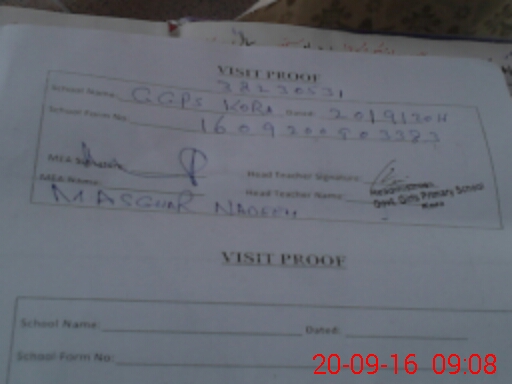 | Attendance Register | Head Teacher | MEA with School | Visit Proof |