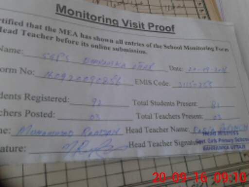 | Certified that this School was Inspected by the Undersigned MEA/DMO Today and the Information Stated Above is as Per Record. | |||||