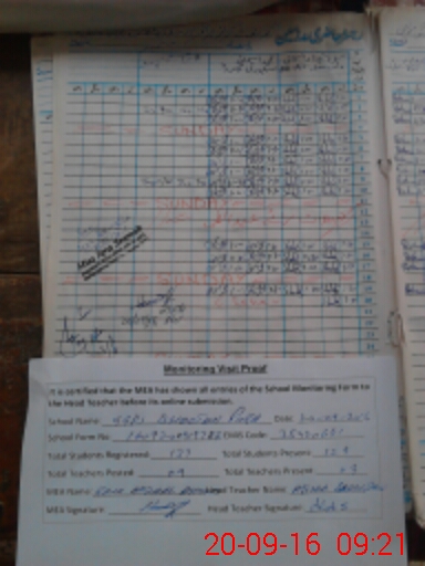 | Certified that this School was Inspected by the Undersigned MEA/DMO Today and the Information Stated Above is as Per Record. | |||||