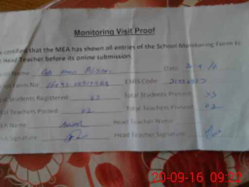 | Attendance Register | Head Teacher | MEA with School | Visit Proof |