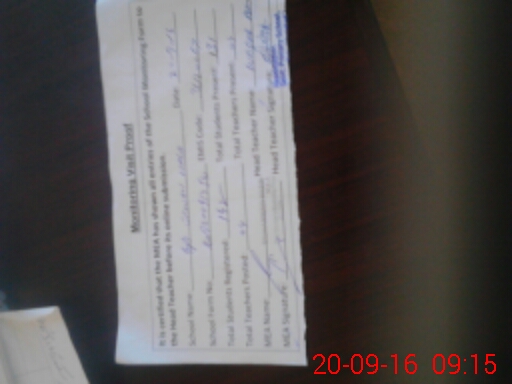 | Monitoring Date: 20-09-2016 | Start Time: 20-09-2016 08:59 AM | End Time: 20-09-2016 09:16 AM | Name of MEA: MU**** YA**** | |