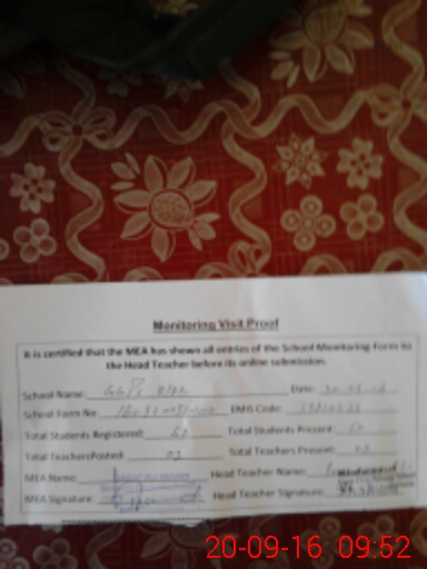 | Certified that this School was Inspected by the Undersigned MEA/DMO Today and the Information Stated Above is as Per Record. | |||||
