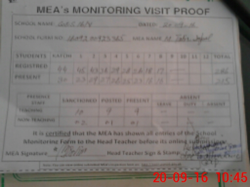 | Certified that this School was Inspected by the Undersigned MEA/DMO Today and the Information Stated Above is as Per Record. | |||||