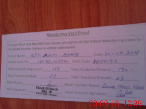 | EMIS Code: 38110142 | Name of School: GPS BASTI BUMB | |||