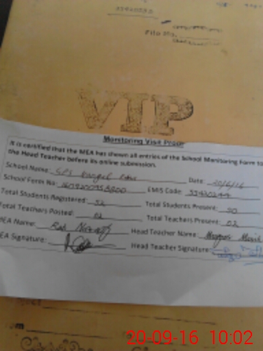 | Attendance Register | Head Teacher | MEA with School | Visit Proof |