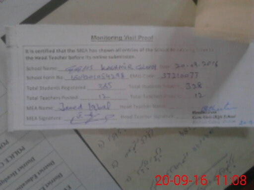 | Certified that this School was Inspected by the Undersigned MEA/DMO Today and the Information Stated Above is as Per Record. | |||||