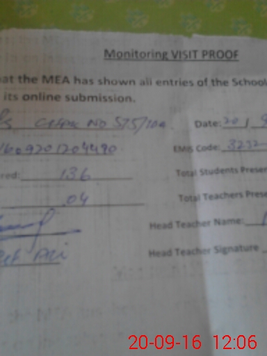 | Attendance Register | Head Teacher | MEA with School | Visit Proof |