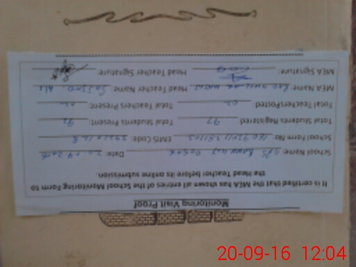 | Certified that this School was Inspected by the Undersigned MEA/DMO Today and the Information Stated Above is as Per Record. | |||||