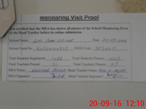 | Attendance Register | Head Teacher | MEA with School | Visit Proof |