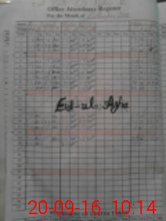| CNIC | Full Name | Designation | R/C | Absence During Last Calender Month |