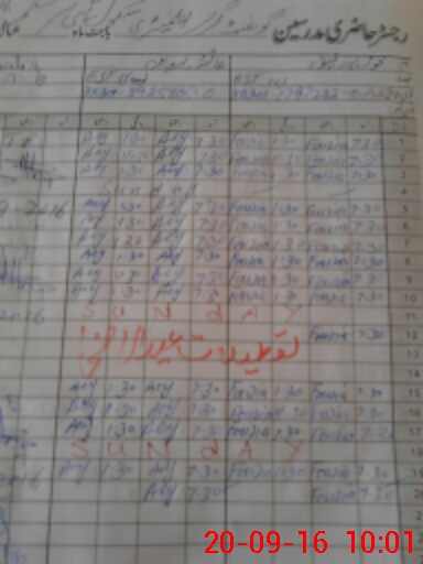 | CNIC | Full Name | Designation | R/C | Absence During Last Calender Month |