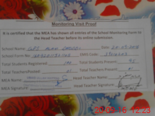 | EMIS Code: 39210203 | Name of School: GPS ALAM DHUDDI | |||