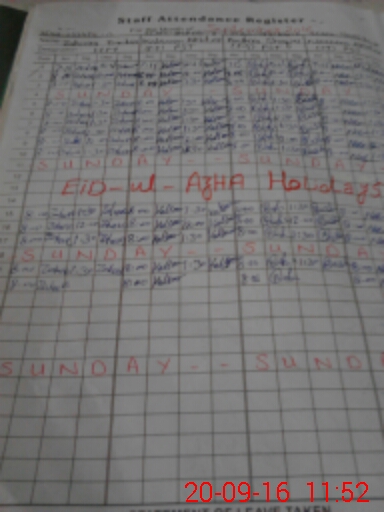 | CNIC | Full Name | Designation | R/C | Absence During Last Calender Month |