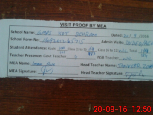 | EMIS Code: 32430175 | Name of School: GGPS KOT BEHRAM | |||