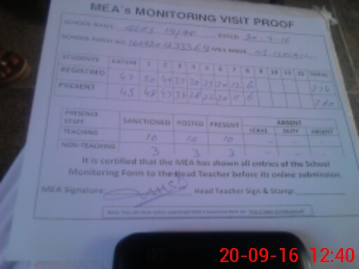 | Attendance Register | Head Teacher | MEA with School | Visit Proof |