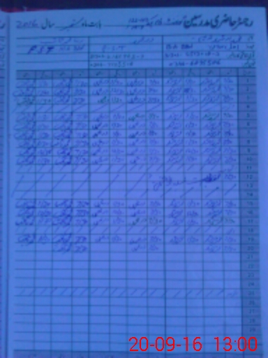 | CNIC | Full Name | Designation | R/C | Absence During Last Calender Month |