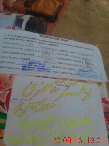 | Attendance Register | Head Teacher | MEA with School | Visit Proof |