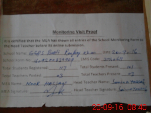 | EMIS Code: 31340611 | Name of School: GGPS BASTI RANJHAY KHAN | |||