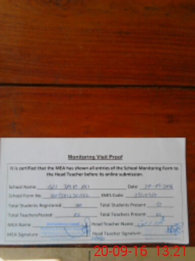 | Attendance Register | Head Teacher | MEA with School | Visit Proof |
