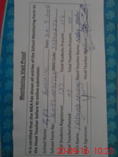 | Certified that this School was Inspected by the Undersigned MEA/DMO Today and the Information Stated Above is as Per Record. | |||||