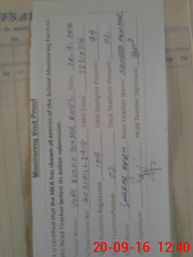 | Attendance Register | Head Teacher | MEA with School | Visit Proof |