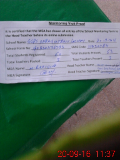 | Attendance Register | Head Teacher | MEA with School | Visit Proof |