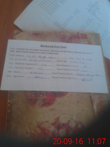 | Attendance Register | Head Teacher | MEA with School | Visit Proof |